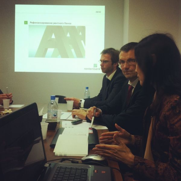 Vorstellung des Konzepts der Landwirtschaftlichen Rentenbank. Der Bereichsleiter des Fördergeschäfts der Rentenbank Herr Dr. Bock stellte im Rahmen eines Einsatzes für den APD dem kasachischen Parlament und dem kasachischen Landwirtschaftsministerium das Konzept der Landwirtschaftlichen Rentenbank als eine Alternative zum Modell einer spezialisierten Agrarbank vor.