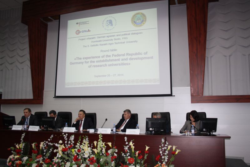 Im Rahmen des Kooperationsprojektes „Deutsch-Kasachischer Agrarpolitischer Dialog“ (APD) werden auch agrarwissenschaftliche Themen bearbeitet und Kontakte unterstützt. Die Kasachische Agrartechnische Univertät in Astana (KazATU) hat das Ziel, sich wissenschaftlich und organisatorisch stärker als bisher den neuen Herausforderungen anzupassen und die agrarwissenschaftliche Forschung in den Fokus ihrer Aktivitäten zu rücken.