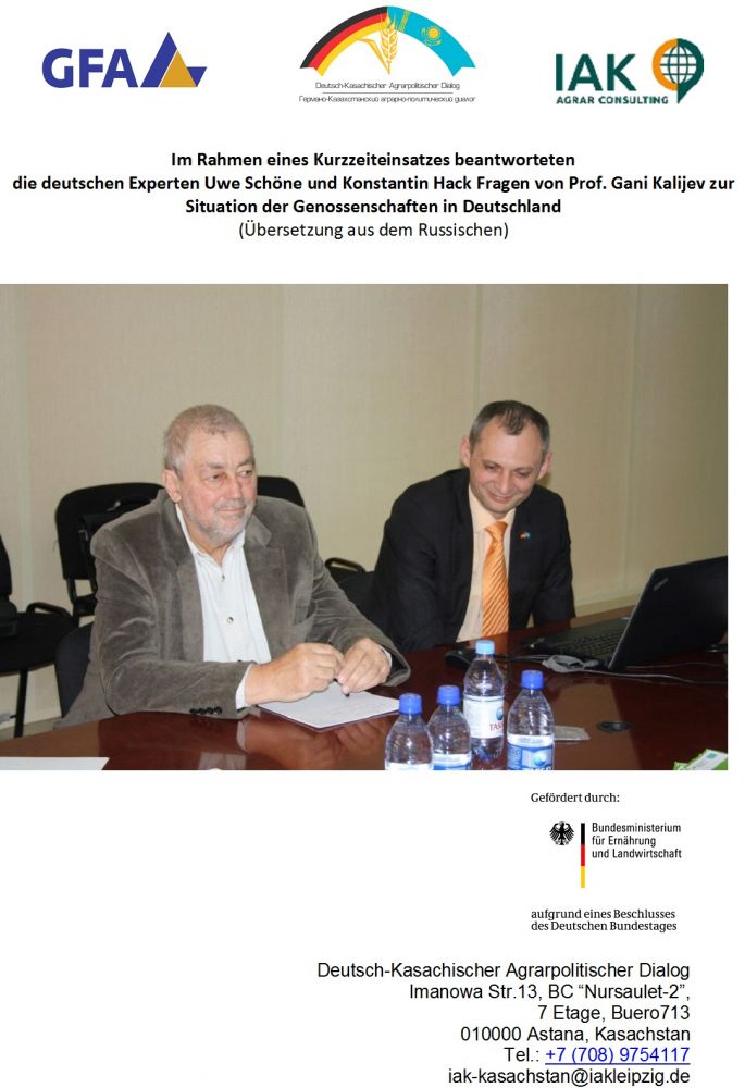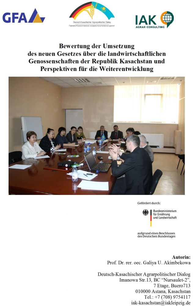 Im November 2013 lud der APD kasachische Vertreter des Landwirtschaftsministeriums, des KazAgroInnovations Instituts für Wirtschaftsentwicklung im ländlichen Raum sowie der staatlichen Holding „KazAgro“ ein, zusammen mit zwei deutschen Fachexperten über die Voraussetzungen für eine erfolgreiche Entwicklung von Genossenschaften in Kasachstan auf Grundlage von internationalen Erfahrungen zu diskutieren. Die wesentlichen Gedanken und Vorschläge des dreitägigen Workshops wurden in dieser Kurzpublikation zusammengefasst.