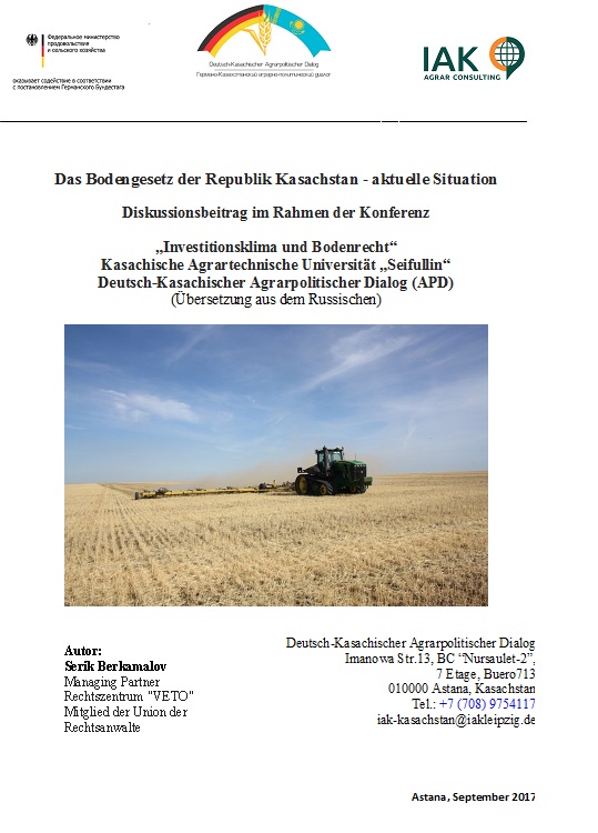 Das Bodengesetz der Republik Kasachstan - aktuelle Situation. Diskussionsbeitrag im Rahmen der Konferenz „Investitionsklima und Bodenrecht“ Kasachische Agrartechnische Universität „Seifullin“ und Deutsch-Kasachischer Agrarpolitischer Dialog (APD)