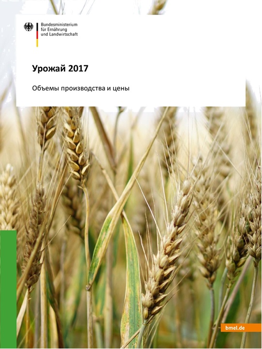 Данный документ содержит обобщающую информацию о валовом сборе урожая за 2017 год по основным сельскохозяйственным культурам, включая сбор плодово-ягодных культур, а также информацию по ценам производителей и потребительским ценам. Документ переведен с немецкого языка ну русский язык.