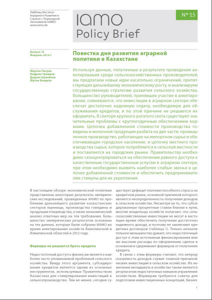 В настоящем обзоре экономической политики представлены некоторые результаты эмпирических исследований, проведенных ИАМО по проблемам дальнейшего развития казахстанских секторов пшеницы, производства говядины и продукции птицеводства, а также экономический анализ ответных мер на эти требования.