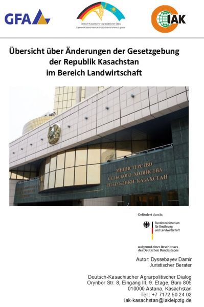 Im Rahmen unserer Projekttätigkeit in Kasachstan verfolgen wir auch die Veränderung von Gesetzen und Durchführungsbestimmungen, die für die Land- und Ernährungswirtschaft relevant sind. Mit diesem Newsletter bieten wir Ihnen erstmals einen neuen Service zur Information über Gesetzesänderungen in Kasachstan an. Sollte dieser neue Service Zustimmung finden, werden wir Ihn natürlich auch im kommenden Jahr fortsetzen. Analog zu unserem vierteljährlichen Newsletter erscheint die Information sowohl in deutscher als auch in russischer Sprache.