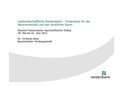 This short presentation aims to give a short introduction into the main objectives of the Kazakh-German Agricultural Policy Dialogue and provides a short overview of the activities currently implemented. For further information please contact the team of the Kazakh-German Agricultural Policy Dialogue.