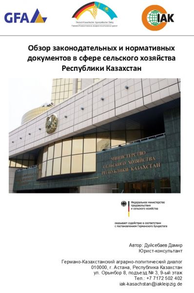 В рамках нашей проектной деятельности в Казахстане мы отслеживаем также и изменение законов и постановлений, важных для сельского хозяйства и продовольственного сектора. Данный информационный бюллетень мы хотим представить Вам как наш новый сервис по информированию об изменениях закона. Если эта новая услуга будут одобрена, мы, конечно, продолжим работу и в следующем году. Аналогично нашему ежеквартальному информационному бюллетеню, мы предоставляем информацию, как на русском, так и на немецком языке.