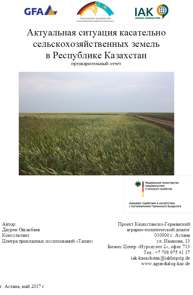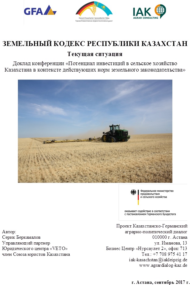 Данный доклад подготовлен в рамках конференции "Потенциал инвестиций в сельское хозяйство Казахстана в контексте действующих норм земельного законодательства», организованным проектом АПД совместно с центром прикладных исследований "Талап" и Казахским агротехническим университетом имени С. Сейфуллина 20 сентября 2017 года.